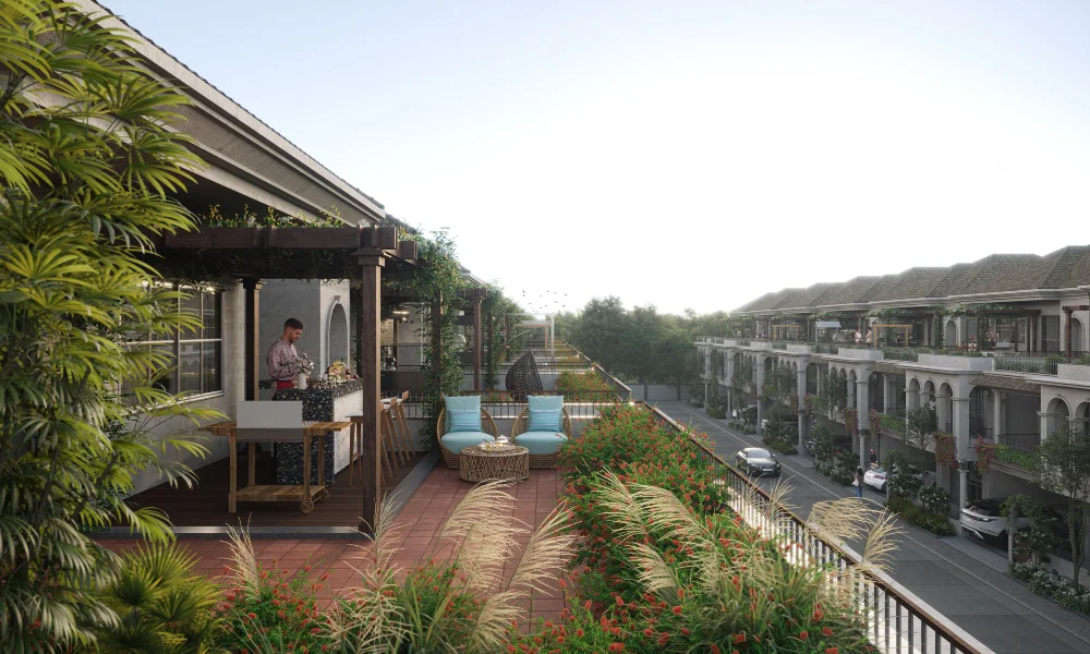 Private terraces, ground-level gardens, double-height living spaces